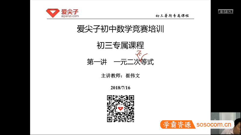 爱尖子初中数学竞赛直播课程,名师授课,拔高初中数学课本,衔接高中数学知识,目标清晰,成体系、有三年完整规划。